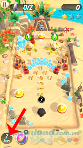Góc trái, bên dưới (2 Birds) là số lần chơi còn lại của cả game