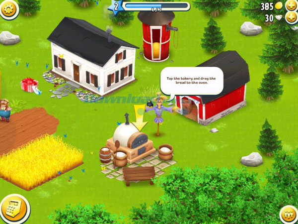 Chạm vào biểu tượng lò bánh mỳ rồi kéo một chiếc bánh vào lò để nướng. Bạn cần có đủ lúa mì để thực hiện công đoạn này. Hay Day không bán hạt giống như các game nông trại khác, số lượng hạt giống sẽ tự khôi phục sau mỗi level.