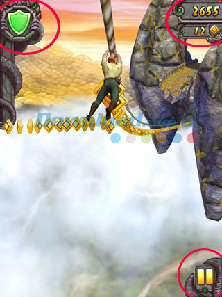 Nhấn nút dưới cùng bên phải màn hình chơi để tạm dừng. Góc trên cùng bên trái là biểu tượng bổ trợ bạn đang dùng cho màn chơi này, nhấn vào để đổi sang các bổ trợ khác mà level của bạn được sử dụng. Góc trên bên phải là sổ điểm mà bạn dành được cùng với số vàng đã thu thập trên đường đi. Các mốc quãng đường (tính bằng mét) sẽ hiển thị phía trên màn hình mỗi khi bạn vượt qua một mốc mới.