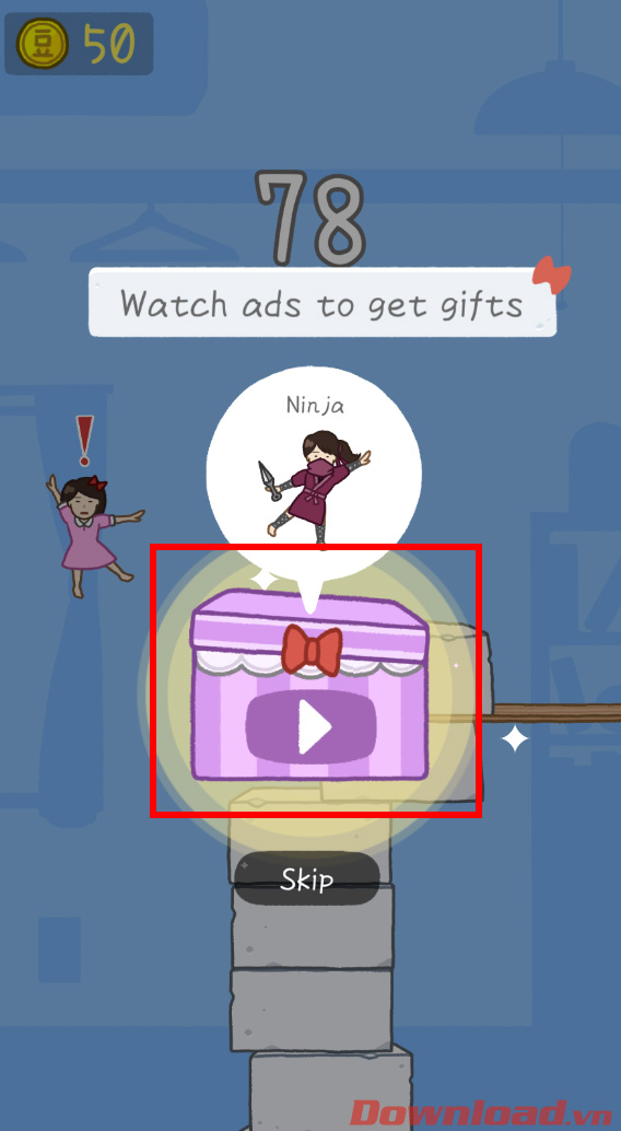 Sau khi thua, bạn cũng sẽ nhận được một hộp quà nếu trong quá trình chơi nhảy qua những miếng đậu phụ có hình quà. Tất nhiên là phải xem video mới nhận được nhé.