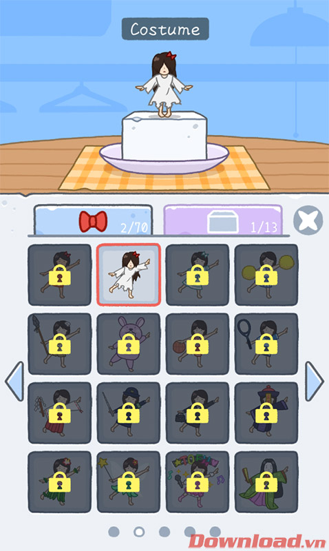 Để mua thêm trang phục cho cô gái, các bạn nhấn nút hình ông lão ở góc dưới bên phải màn hình chính.
