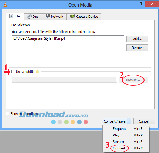 Sau đó tích vào nút xổ xuống bên cạnh nút Convert / Save chọn Convert (hoặc sử dụng tổ hợp phím Alt + O).
