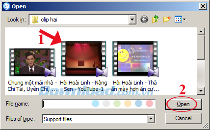 Bước 2: Cửa sổ Open xuất hiện, tìm đến thư mục chứa Video cần chuyển đổi, chọn Video và nhấn vào nút Open.