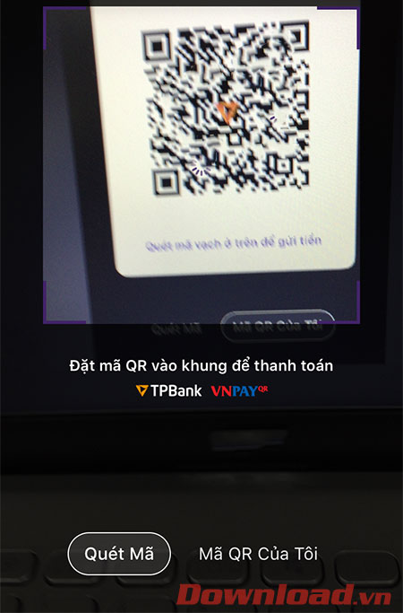 Tiếp theo, hãy di chuyển camera điện thoại của bạn đến mã QR cần quét. Mã QR này có thể là mã chuyển tiền, mã thanh toán... Các bạn lưu ý nên di chuyển sao cho mã QR nằm giữa của phần quét để ứng dụng nhanh chóng nhận diện mã QR.
