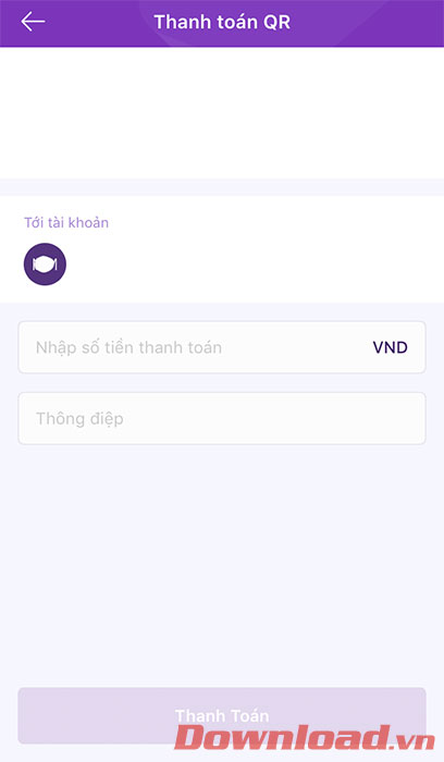 Sau khi đã quét thành công, các bạn kiểm tra thông tin của tài khoản cần chuyển tiền, thanh toán ở phần Tới tài khoản. Nhập tiếp số tiền cần chuyển và nội dung chuyển vào ô trống sau đó nhấn nút Thanh toán để tiến hành chuyển tiền.