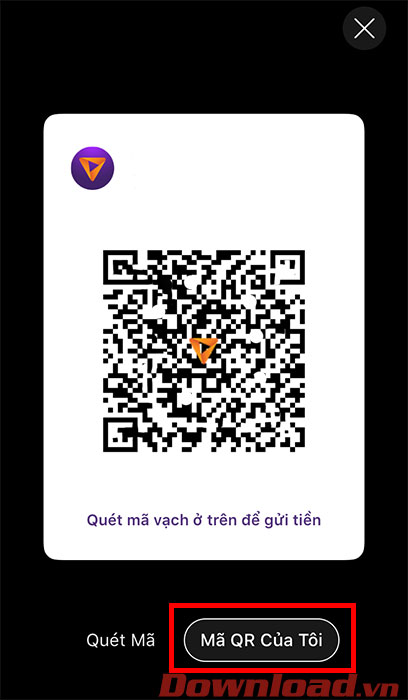 Ngoài ra, để tra cứu mã QR để người khác chuyển tiền cho bạn, hãy nhấn chọn phần Mã QR của tôi trong phần Quét mã. Sau đó hãy chụp lại mã QR này và gửi cho người cần chuyển tiền cho bạn.