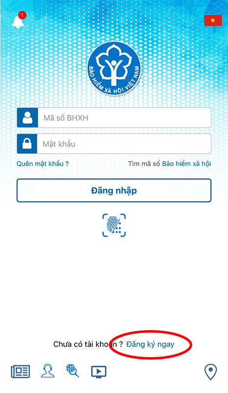 Sau khi tải và cài đặt xong, các bạn hãy mở ứng dụng lên. Ở màn hình đăng nhập, nhấn chọn nút Đăng ký ở phía dưới.