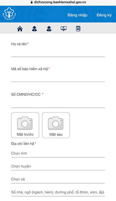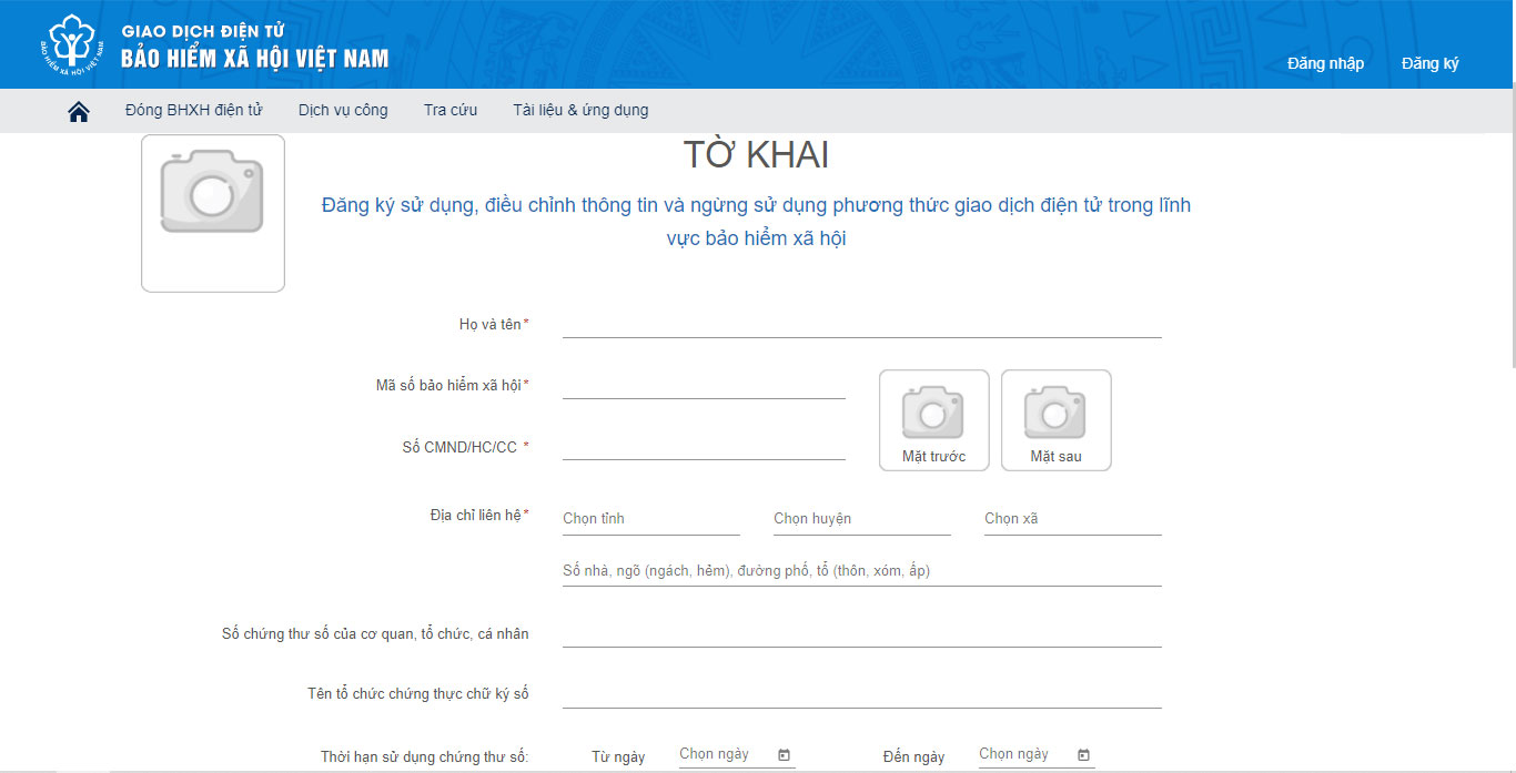 Điền đầy đủ thông tin vào tờ khai như Họ tên, Số BHXH, nơi ở... Chú ý upload ảnh CMND/CCCD cả mặt trước và mặt sau vào tờ đơn.