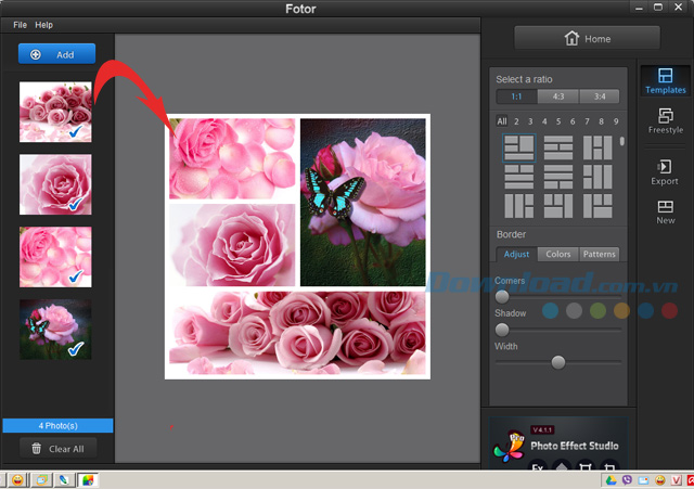 Fotor không những giúp bạn dễ dàng chỉnh sửa ảnh mà còn hỗ trợ ghép ảnh vào khung. Với rất nhiều mẫu khung có sẵn, cho phép ghép tối đa lên đến 9 ảnh trên một khung duy nhất. Nhờ đó, giúp bạn tự ghép các fle ảnh nhanh chóng mà không đòi hỏi quá nhiều kiến thức đồ họa nào cả.