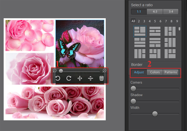 Bước 4: Nhấn chuột vào mỗi khung ảnh sẽ có một thanh công cụ hiển thị, bạn có thể phóng to, thu nhỏ, xoay, lật hoặc xóa ảnh nếu thấy không phù hợp.
