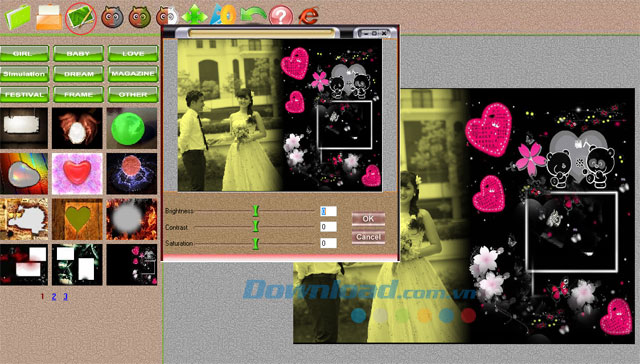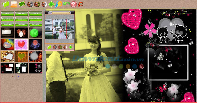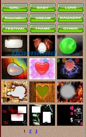 Ngoài ra, chương trình cũng hỗ trợ nhiều khung hình để người dùng thoải mái lựa chọn. Các khung hình được nhóm theo nhiều chủ đề khác nhau như: