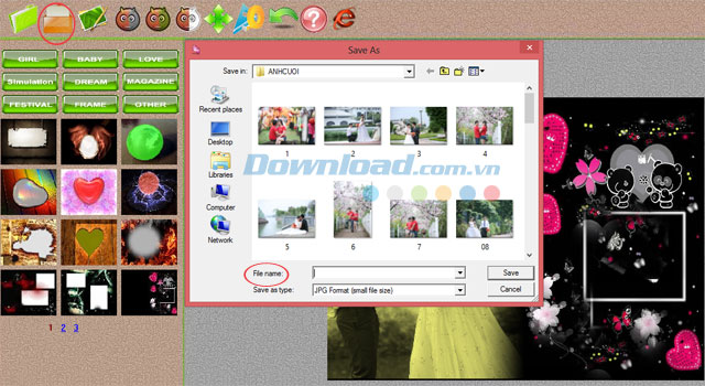 Cuối cùng, nhấn nút Save để lưu lại tác phẩm vừa được tạo ra. Nhập tên file trong trường File name.