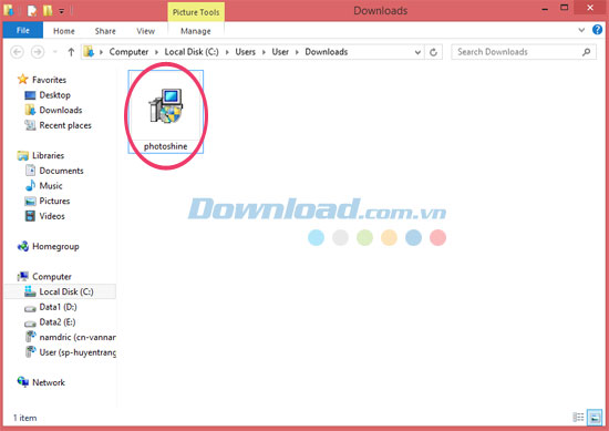 Khi tải chương trình PhotoShine về máy tính, vui lòng nhấp chuột vào biểu tượng của nó để tiến hành cài đặt.