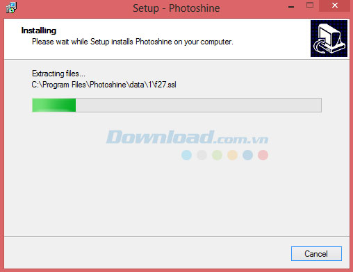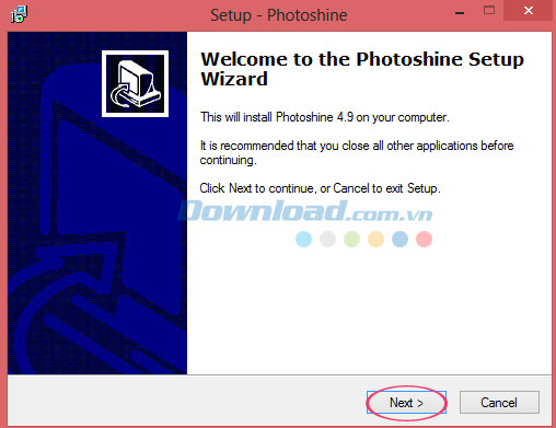 Sau đó, bạn sẽ nhìn thấy trình thuật sĩ hướng dẫn cài PhotoShine trên máy tính như hình bên dưới: