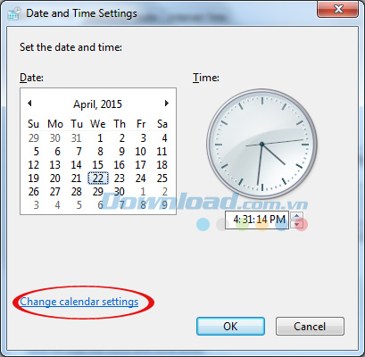 Bước 3: Cửa sổ Date and Time Settings xuất hiện, tiếp tục nhấn vào đường dẫn Change calendar settings ở góc dưới cùng bên trái cửa sổ.