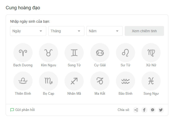 Trên Cốc Cốc, tính năng cung hoàng đạo sẽ cung cấp cho người dùng những thông tin sau: