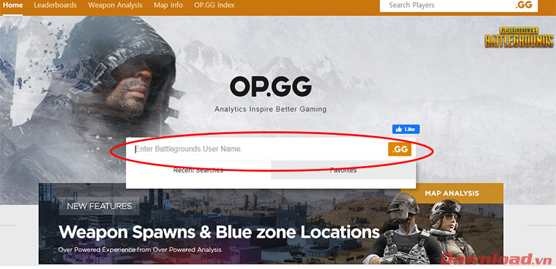 Đầu tiên các bạn truy cập vào trang https://pubg.op.gg/. Nhập tên nhân vật của bạn vào ô Enter Battlegrounds User Name, sau đó nhấn Enter.
