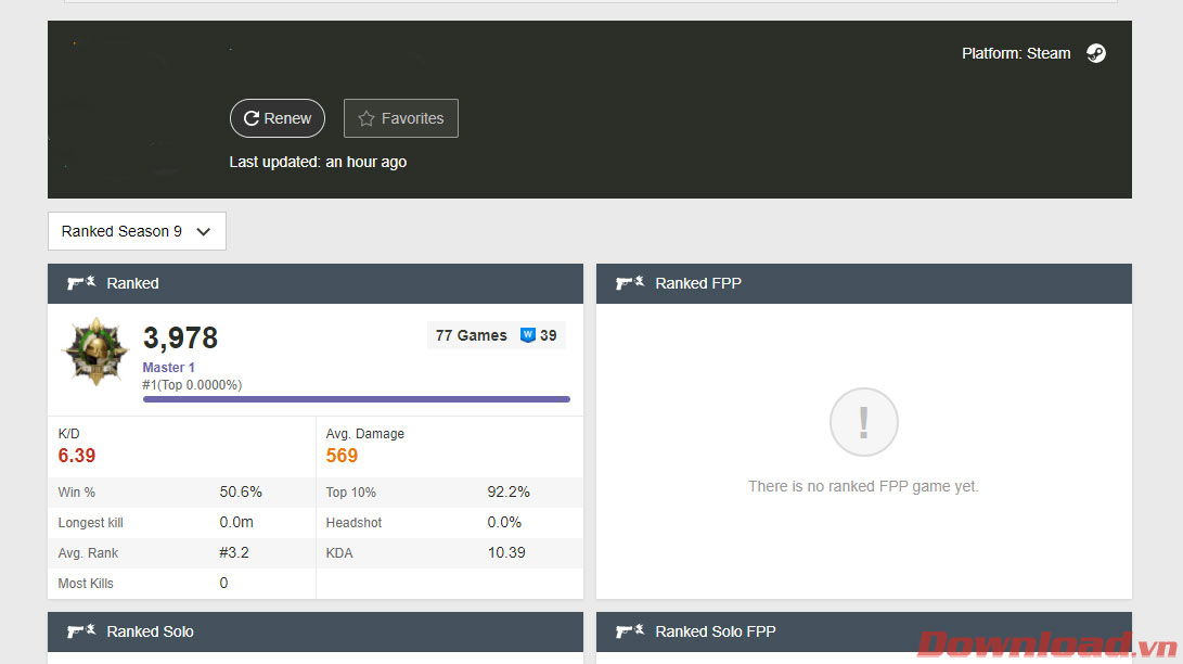 Thông thường, nếu muốn kiểm tra mức rank của bản thân trong PUBG PC và PUBG Mobile thì game thủ cần đăng nhập vào game. Tuy nhiên, trong bài viết sau đây Download.vn sẽ hướng dẫn bạn cách để không cần phải mất thời gian vào game mà vẫn xem được mức rank cũng như thông số nhân vật rất chi tiết.