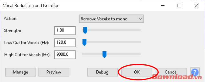 Trong hộp thoại hiện ra, nhấn nút OK để thực hiện quá trình loại bỏ giọng hát.