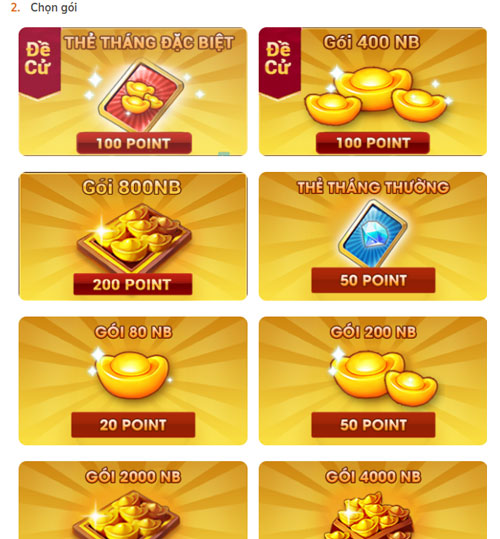 Chọn tiếp một gói muốn nạp trong danh sách các gói nạp Point.