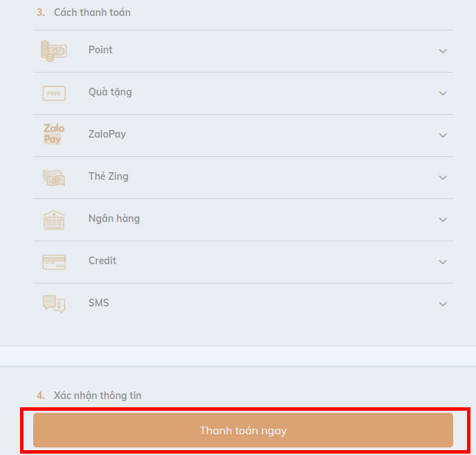 Cuối cùng, chọn một trong cách hình thức thanh toán ở dưới sau đó nhấn Thanh toán ngay để kết thúc quá trình nạp thẻ.