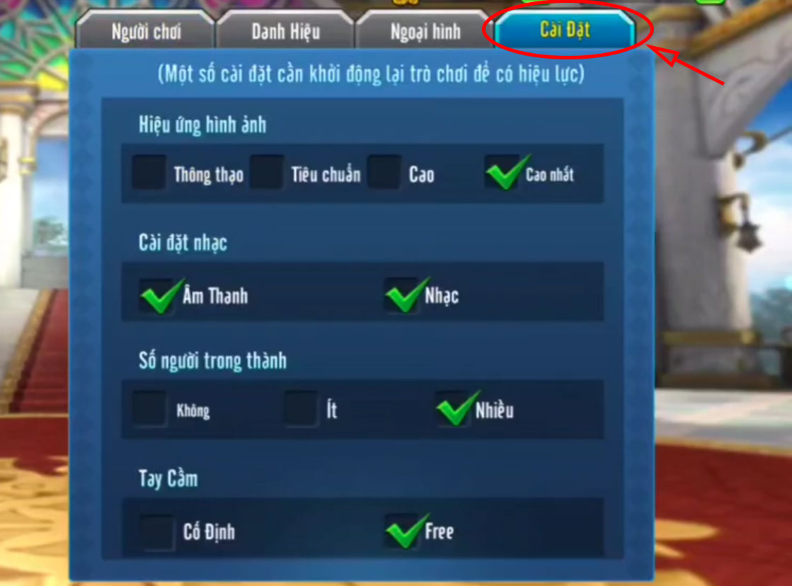Trong màn hình hiện ra, nhấn chọn vào tab Cài đặt.