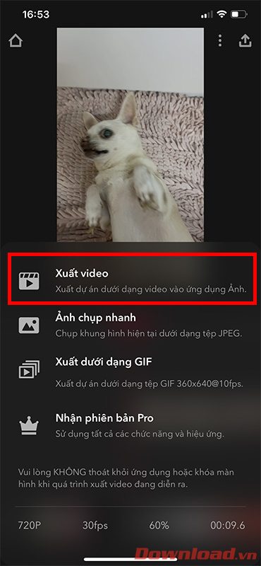 Bước 8: Cuối cùng, nhấn chọn Xuất video để lưu lại video vừa xóa phông vào máy.
