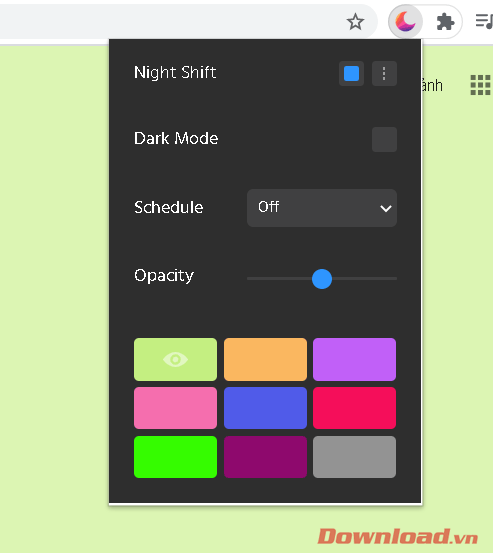 Với tiện ích Night Shift nhỏ gọn này, các bạn có thể hoàn toàn yên tâm lướt Web mà không lo bị nhức mỏi mắt, nhất là vào ban đêm khi lượng ánh sáng xung quanh thấp.