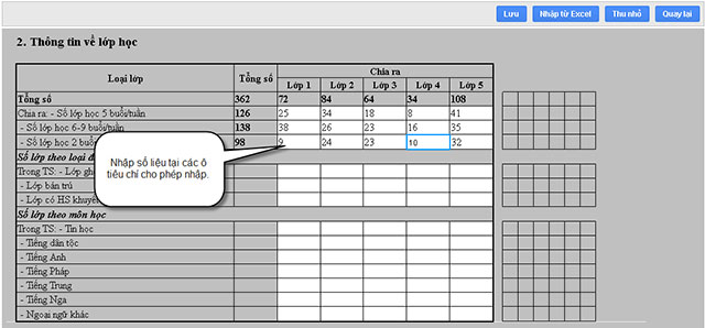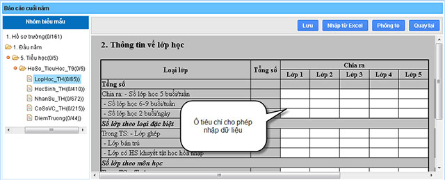 Hệ thống thống kê giáo dục quốc gia giúp người dùng cấp Trường thực hiện các kỳ báo cáo số liệu hàng năm. Nhập số liệu theo biểu mẫu của Bộ/Sở/Phòng, quản lý tiến độ của kỳ báo cáo, khai thác các số liệu đã nhập.