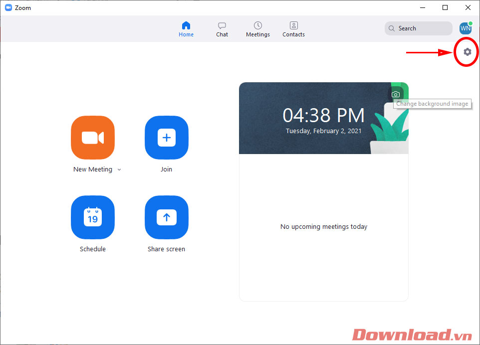 Để sử dụng tính năng filters, đầu tiên các bạn vào phần Setting trong Zoom (nút hình bánh răng ở góc bên phải cửa sổ Zoom)
