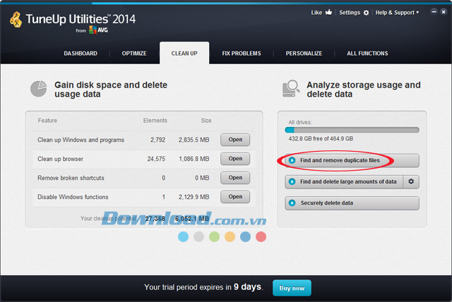 Tại đây, chúng tôi sẽ hướng dẫn bạn cách tìm kiếm và loại bỏ những file trùng lặp để giải phóng không gian ổ cứng. Bạn hãy nhấn vào nút Find and remove duplicate files.