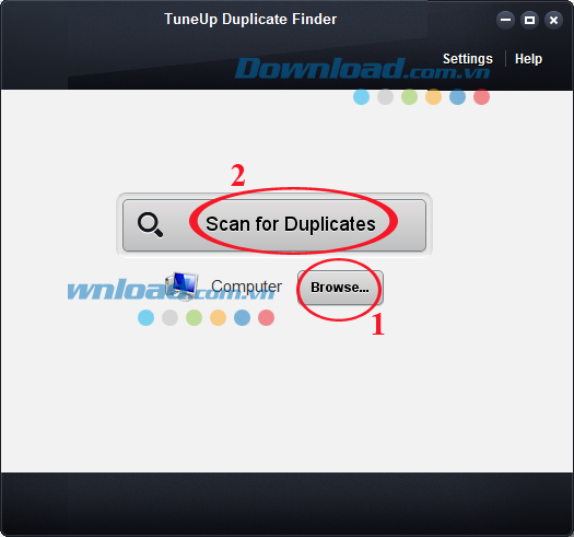 Trên cửa sổ mở ra, bạn nhấn nút Browse... để chọn ổ đĩa, thư mục muốn quét rồi bấm Scan for Duplicates.