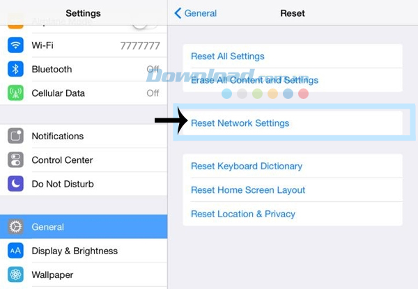Cũng truy cập vào Settings, sau đó các bạn làm như sau. Tìm tới mục General, chọn vào Reset, rồi chọn tiếp Reset Network Settings.