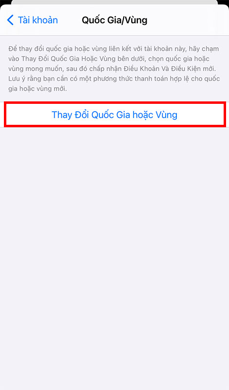 Nhấn chọn tiếp vào nút Thay đổi quốc gia hoặc vùng để đổi sang khu vực USA.