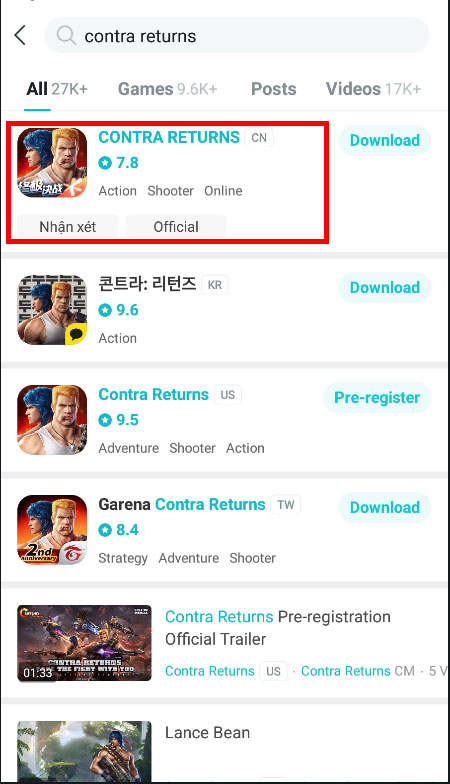 Tìm hiểu thêm »Contra Returns là tựa game di động dựa trên dòng game Contra nổi tiếng một thời. Contra Returns được Tencent Games phối hợp với Konami phát triển, tuy chưa được phát hành chính thức ở việt Nam nhưng game thủ có thể tải và chơi Contra Returns sớm bằng thủ thuật trong bài viết dưới đây.