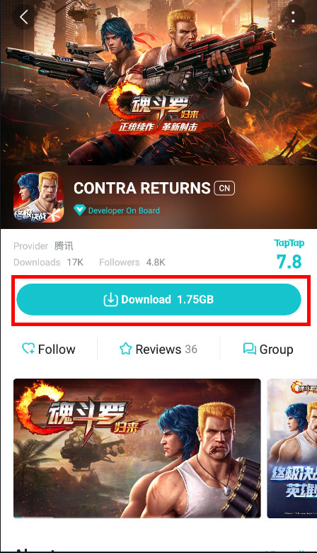 Để tải Contra Returns từ máy chủ nước ngoài, đầu tiên các bạn cần tải và cài đặt ứng dụng Tap Tap cho Android.