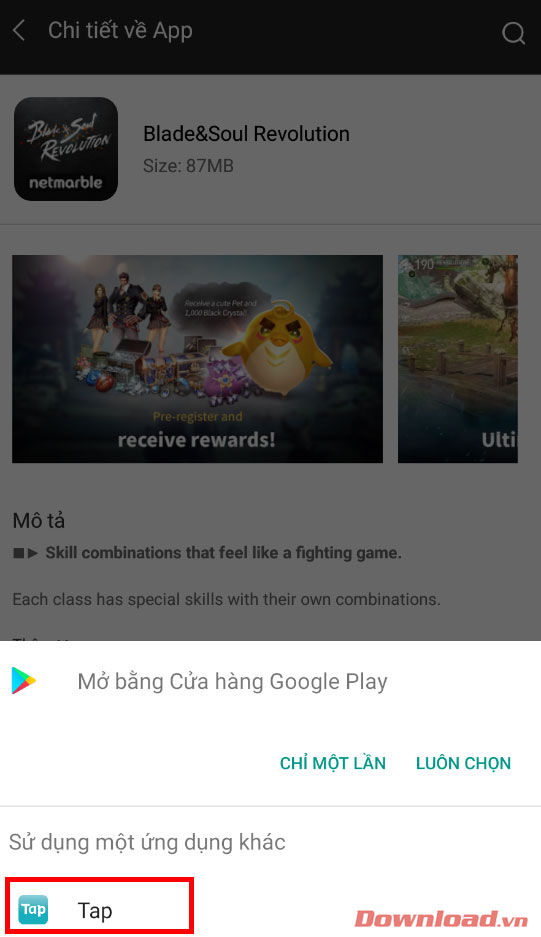 Nhấn chọn mở bằng ứng dụng Tap (Không chọn Google Play).