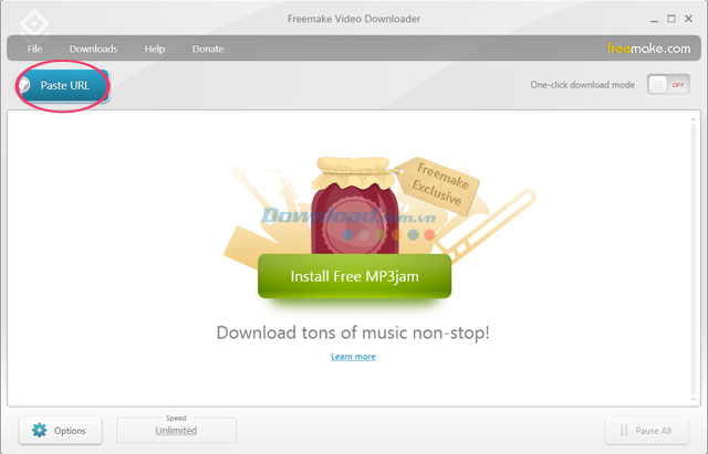 Kế tiếp, trên cửa sổ chính của chương trình nhấn chuột vào tùy chọn Paste URL để dán URL của video.