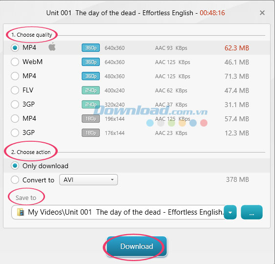 Sau khi thiết lập xong, nhấn nút Download để bắt đầu quá trình tải video về máy tính của mình.