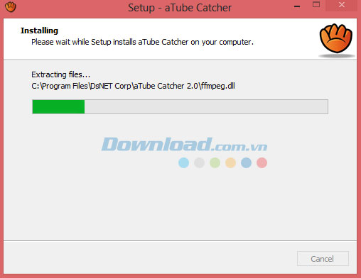 Chờ đợi trong khi quá trình cài đặt aTube Catcher trên máy tính đang diễn ra.