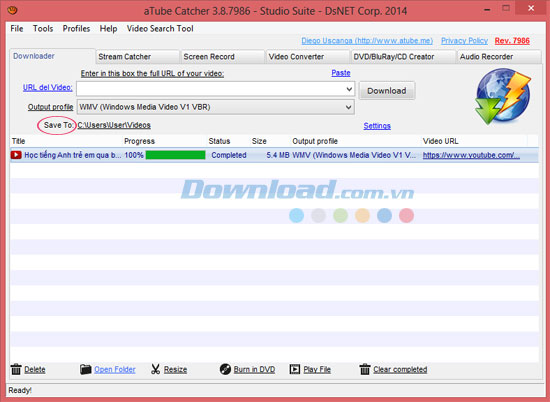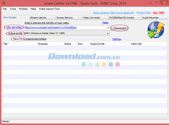 Tiếp theo, dán địa chỉ URL đó và ô URl del Video, và nhấn Download để tải nó về. Ngoài ra, bạn có thể lựa chọn cấu hình đầu ra cho video trong phần Output profile và lưu lại nó sang đường dẫn mình muốn trong ô Save to.