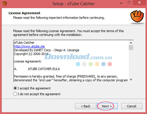 Sau đó, vui lòng đọc các thông tin quan trọng bên dưới trước khi tiếp tục. Bạn phải đồng ý những điều khoản sử dụng đó trước khi tiếp tục việc cài. Nhấn chuột vào ô I accept the agreement và bấm Next.