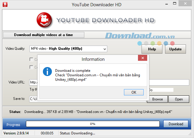 Chọn thư mục lưu trữ, rồi nhấn nút Download, và chương trình sẽ tự động tải file video về máy tính: