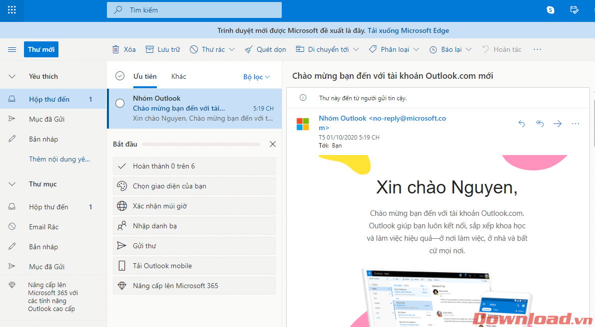 Sau khi hoàn thành, bạn sẽ được chuyển đến hòm mail.