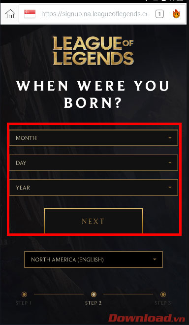 Tiếp tục điền đầy đủ ngày tháng năm sinh của bạn và nhấn Next.
