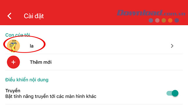 Tiếp đó kéo xuống tìm đến mục Con của tôi - tại đây sẽ hiển thị tất cả trẻ bạn đã thêm ở phần cài đặt ứng dụng ban đầu.