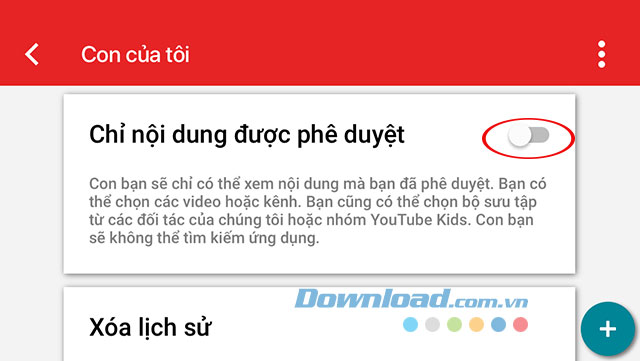Ở phía dưới là mục Chỉ nội dung được phê duyệt, hãy bật mục này lên.