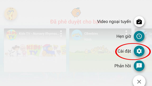 Tại giao diện chính của ứng dụng xem video Youtube Kids hãy nhấn chọn đến biểu tượng chiếc khóa để đến với giao diện Cài đặt.