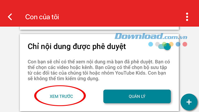 Lúc này chúng ta đã quay lại cửa sổ Con của tôi, bạn có thể nhấn vào Xem trước ở mục Chỉ nội dung phê duyệt để xem lại các kênh đã duyệt.