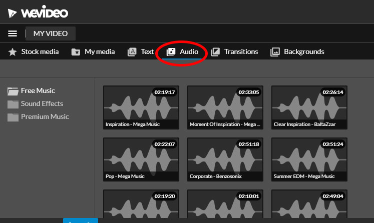 Tương tự như vậy, nhấn nút Audio để thêm âm thanh cho đoạn video.